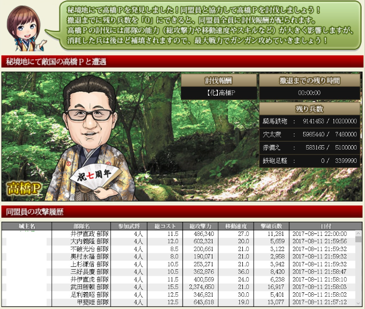 で、通常の報酬は銅銭少々とかランクの低い小姓とかですね・・・イベント的な秘境大殿は少し良いものが貰えたりはしますが・・・(上のような高橋P討伐など)