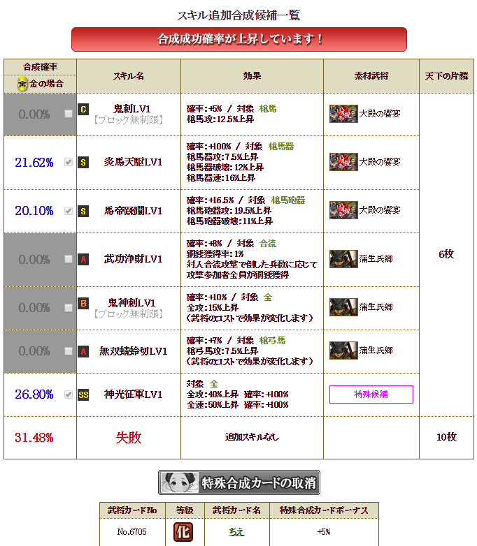 神光以外の天スキルは・・・最早今では微妙ですが・・・まあ、付かないよりはまし・・・失敗確率も割と高いっちゃポチリ