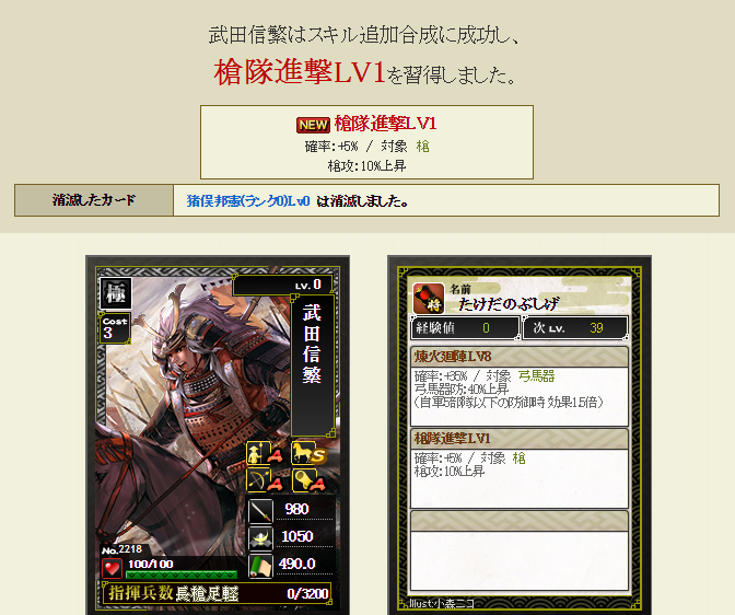 はい、槍隊進撃が付きました~さて・・・これで合成しようとすると・・・