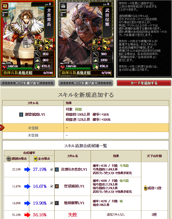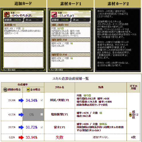 これ・・・スキルを付ける側に付けて、そのスキルにぶつける合成をしても、確率がアップします