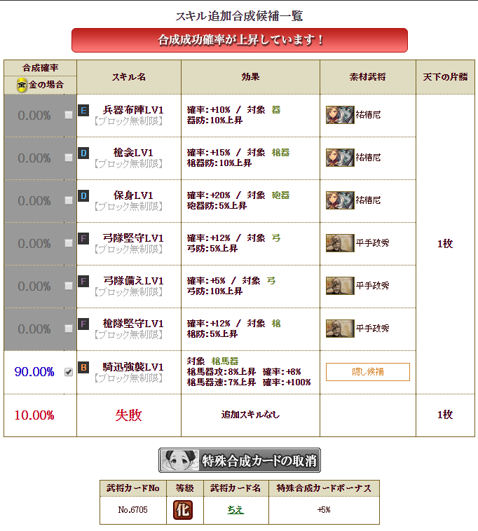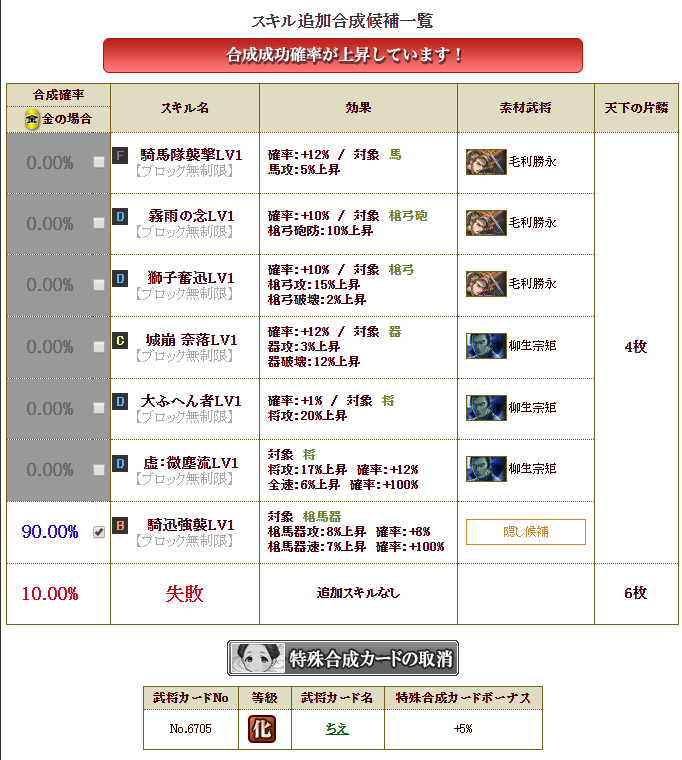 何とか素材2枚完成・・・しましたが、Bスキルとか付けるのが面倒なので・・・1か月以内に合成チャレ・・・