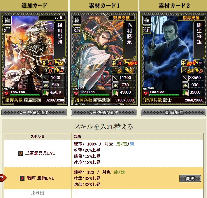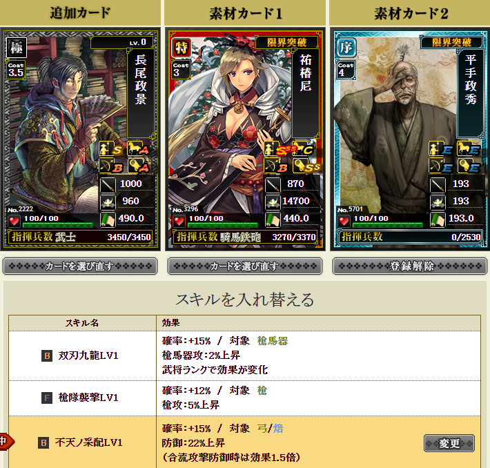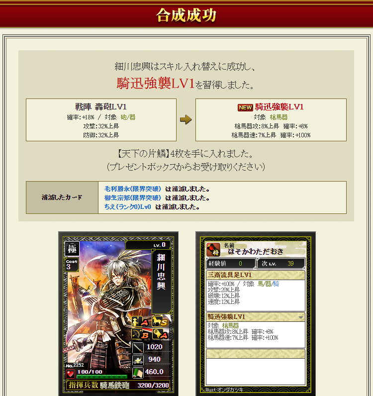 できる限りランクアップさせとかないと・・・と、長年愛用してきた極武将を惜しみなく溶かして、限界突破武将を4枚完成させて・・・