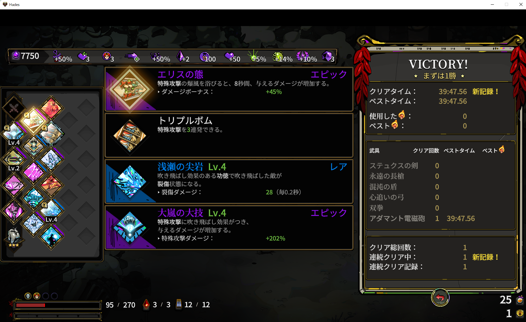 クリアしても、まだまだ楽しめる要素はあるようだし、武器も他ので試してみようと思っています