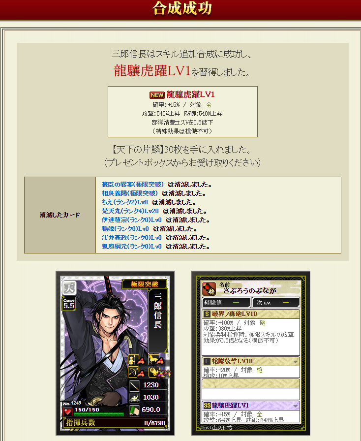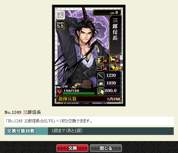 前回、今川卓越部隊に三郎信長さんを加える枠ができたので、早速、幻ポイントで交換します