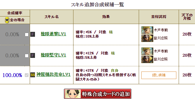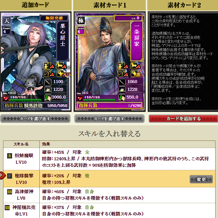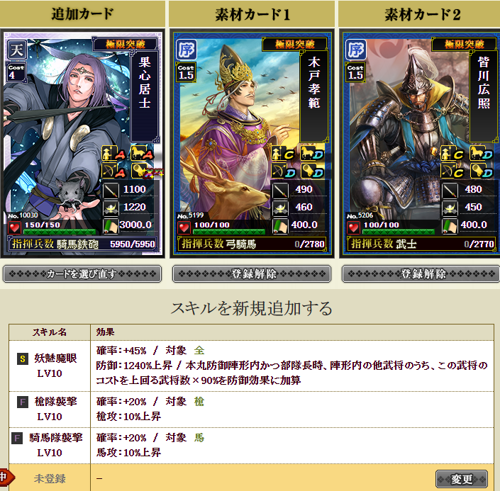これで、スキルが何もついてなかった果心に自マネが3つ付いたので、多少はパワーアップしたでしょう・・・