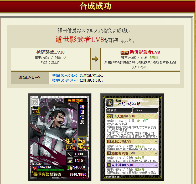 それぞれコスト依存スキルが、850前後→1200越えとなったため、織田さんの初期スキルが死んでいますが、トータルで強いはず・・・