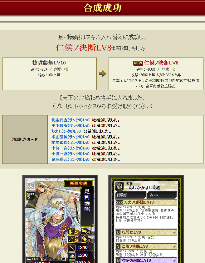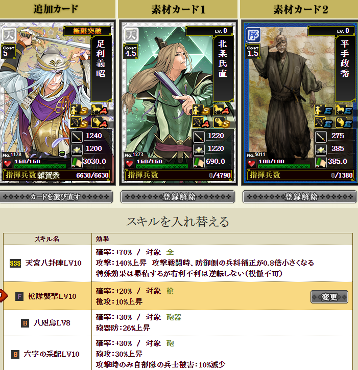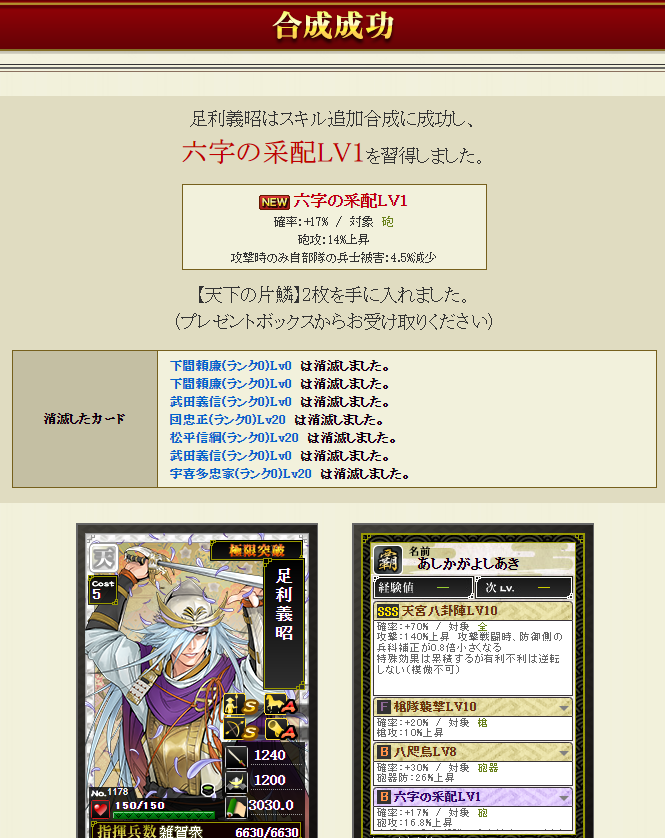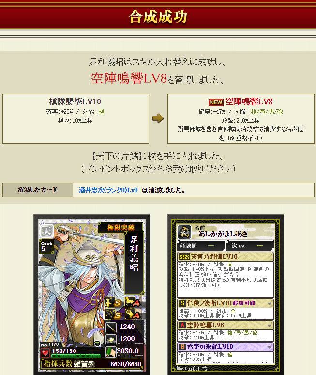 4合流するなら名声減らないようにしないとなので、このスキル・・・足利さんに合成でいいのかわかりませんが適当ですw