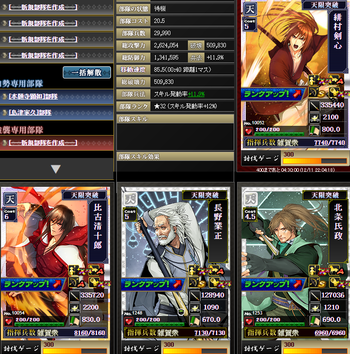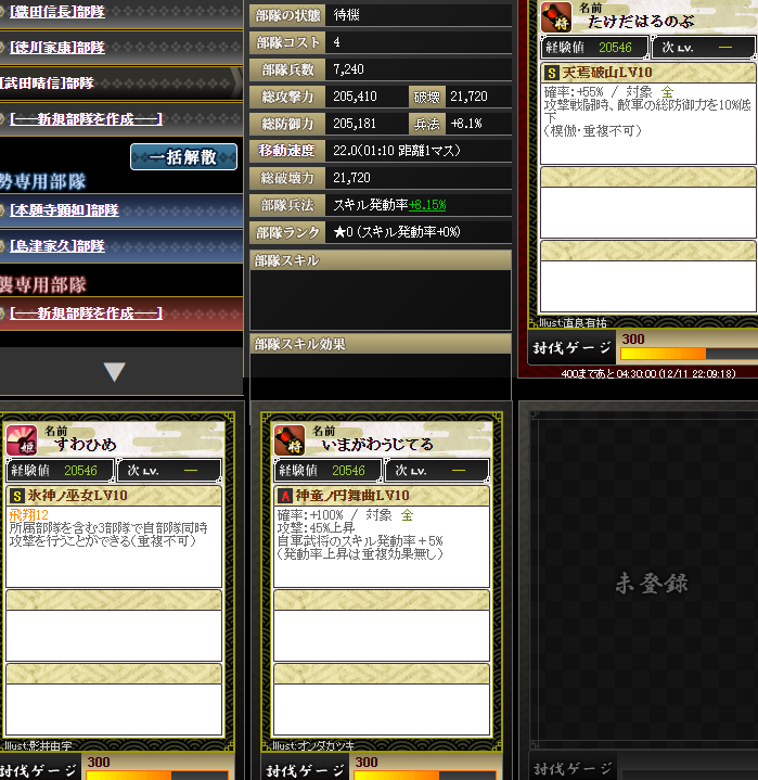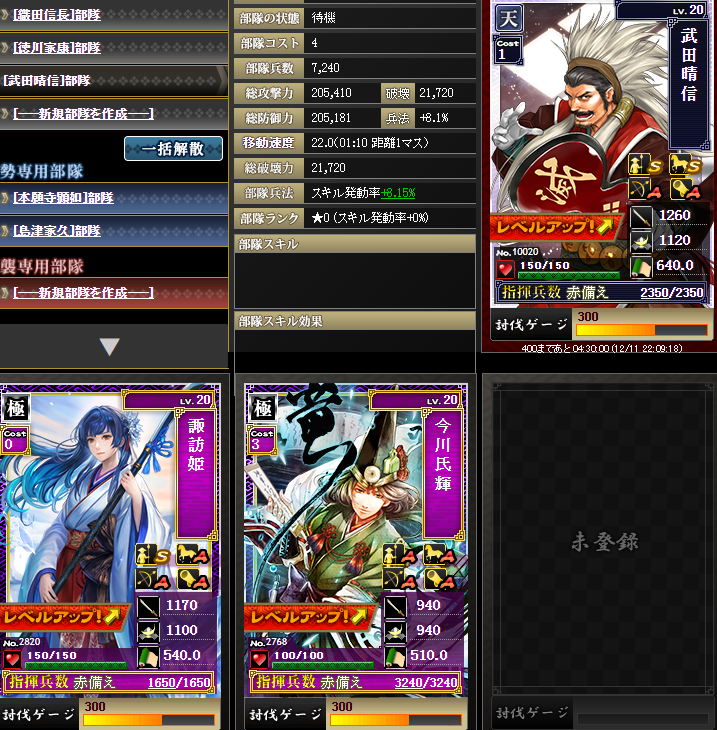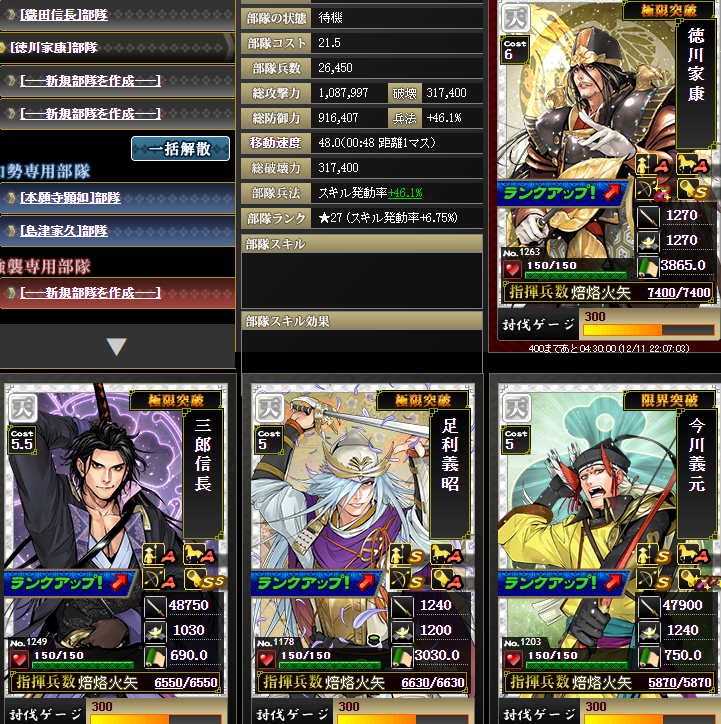 なんですかねこの部隊は・・・信長さんマネ部隊で速度も担う・・・一応スキルがすべて埋まっていますが、とても弱いですw火力は1億ちょい