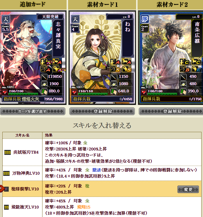 記憶では、ねねさんのスキルは6.8×防御参加武将だったはずが、これでは3ですね・・・あれ~・・・
