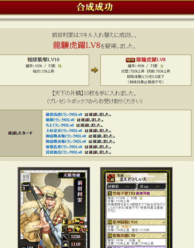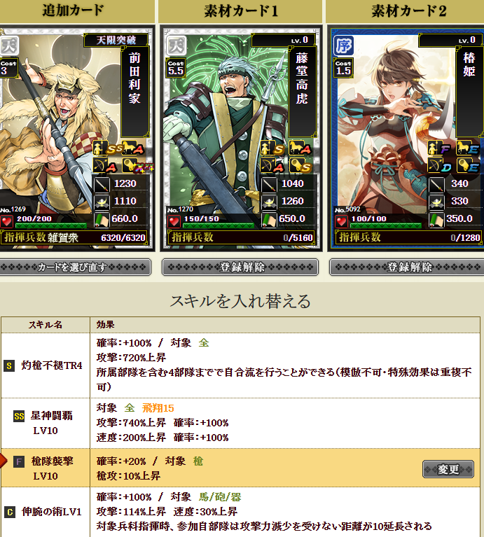 正直前田さんは強いスキル付けても弱い印象しかないですが、それでも4合流のために外せないので、仕方なく付けていきますw
