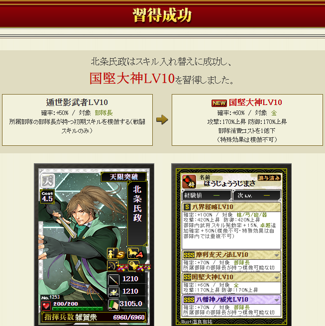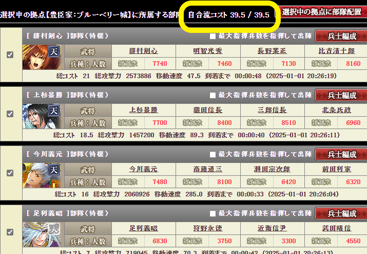 覇北条さん(コスト0.5)に変わる武将は、北条氏政さん(コスト4.5)結構きつい・・・w