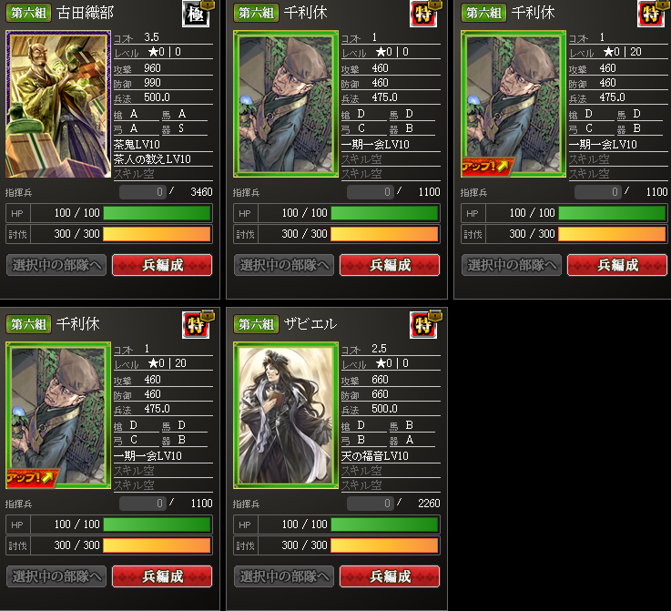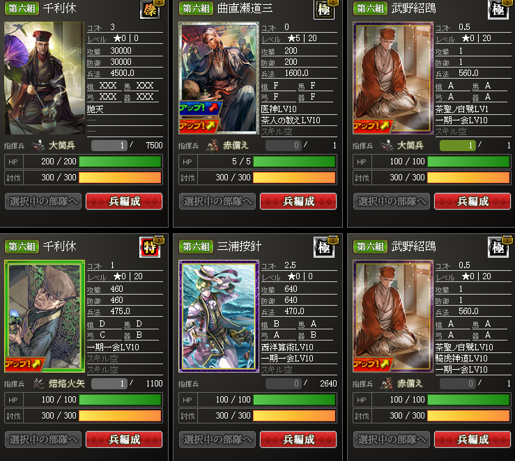 ※ちなみに、極傑の千利休さんを鍛錬ポイント500に変えたらダメかな?と、イクサ仲間に聞いてみたら、止められましたw