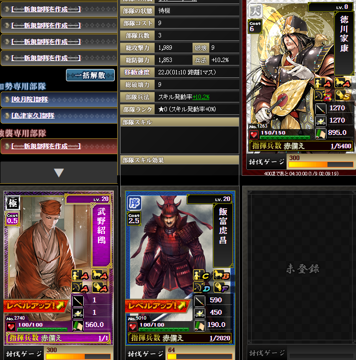 試しに討伐ゲージを減らした序武将を、騎虎神道凸してみます