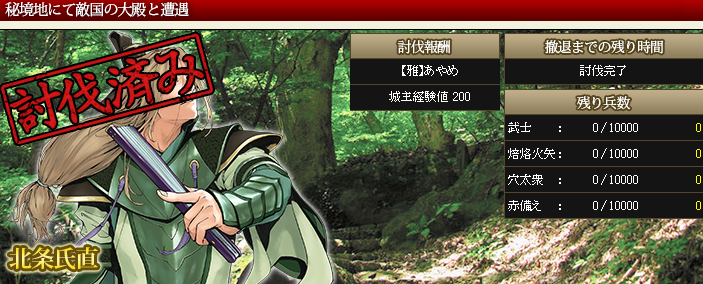 で、討伐ゲージマックスとなった序武将が、回復までどれくらいか確認すると・・・