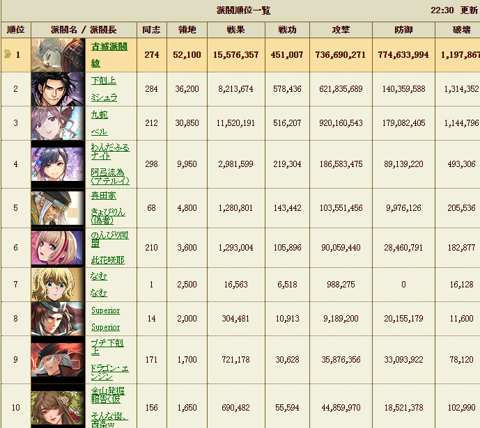 まず、派閥順位は、私の所属した古城派閥が1位でした~おめです♪