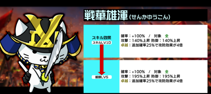ただ、天地超克は発動率46%で、加藤さんのスキル虎伐閃衝の発動率は36%・・・ちょっと低いっすね