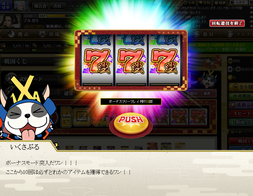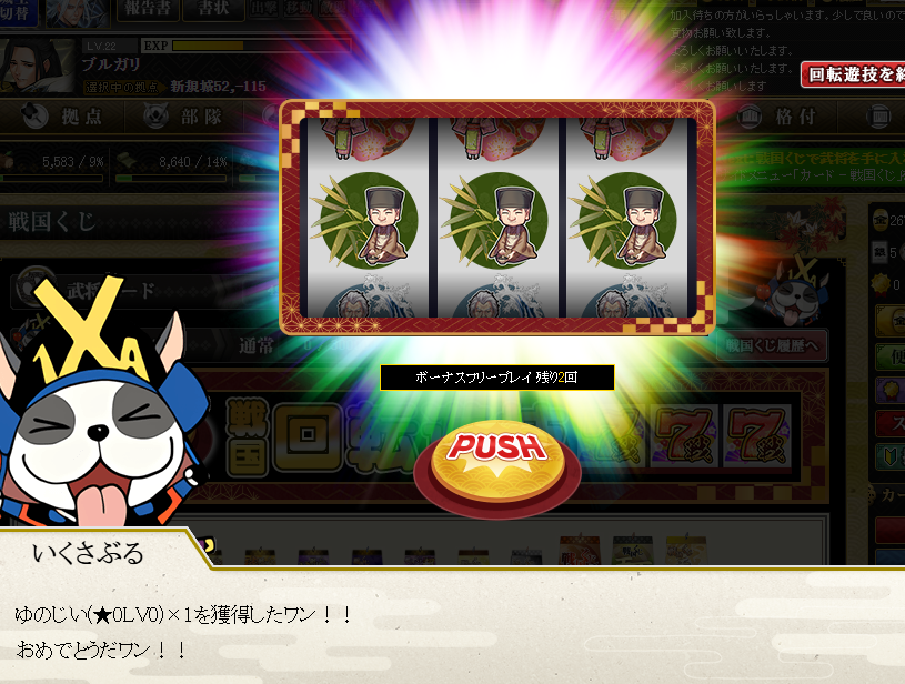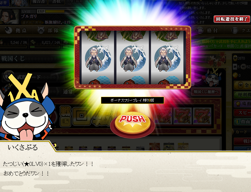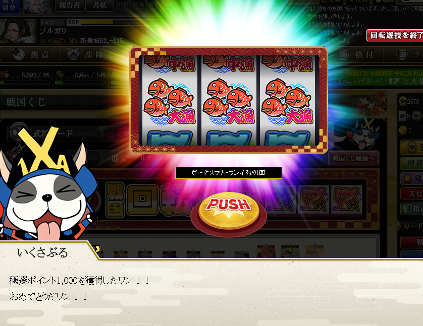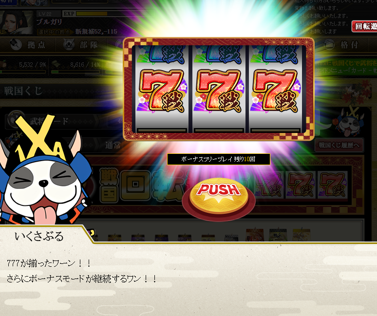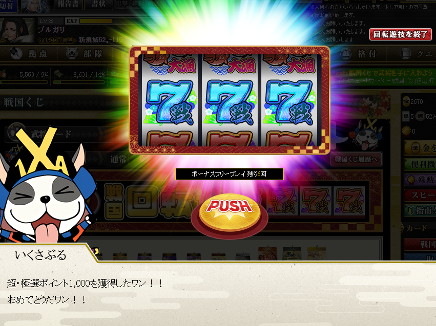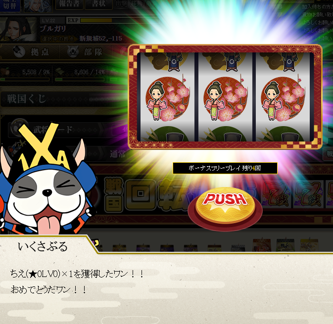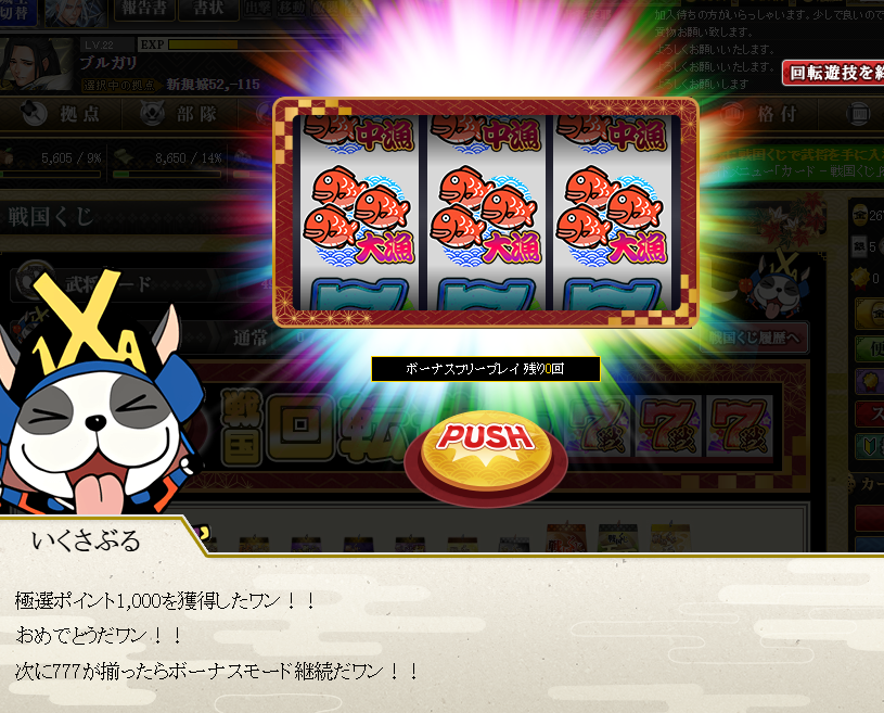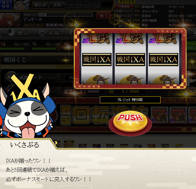 ちなみに、この「戦国IXA」スロットで言うBAR的なやつだと、3回連続揃わないとボーナスステージは始まらないようですね