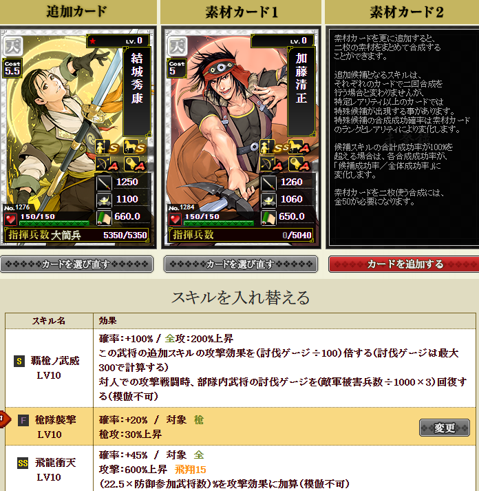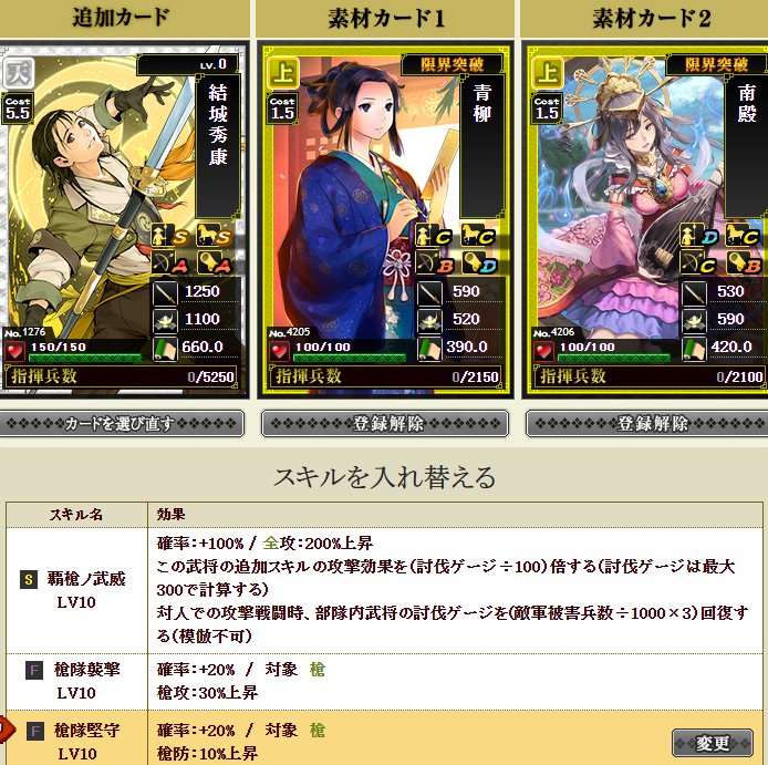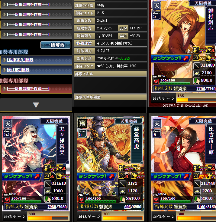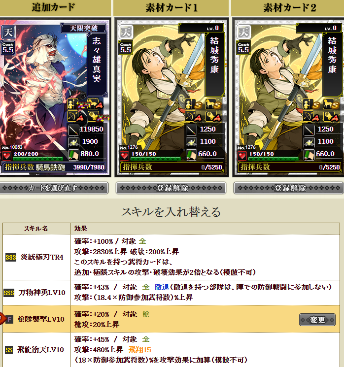結城さんに進撃・堅守を付け、志々雄さんに襲撃を付けて・・・