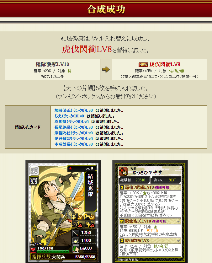 新スキル、虎伐閃衝は敵軍総武将コスト×2.1%