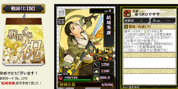 続けて、志々雄さんにこの結城さんをぶつけてみます・・・影から譲与してと・・・