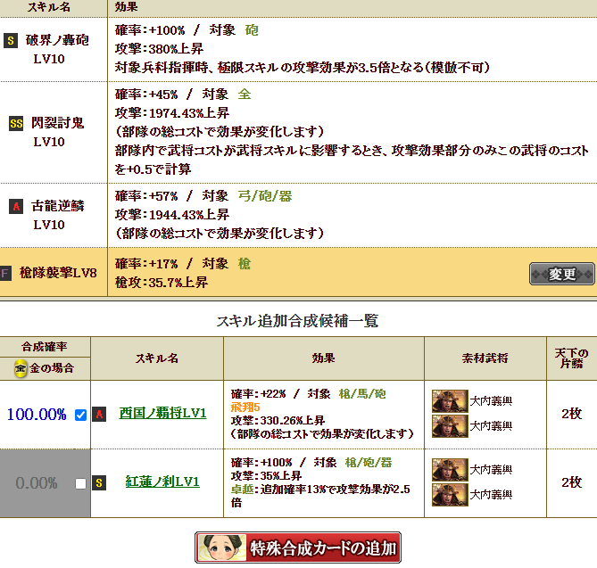 ※ひたすらコスト依存スキルを合成していくだけです・・・