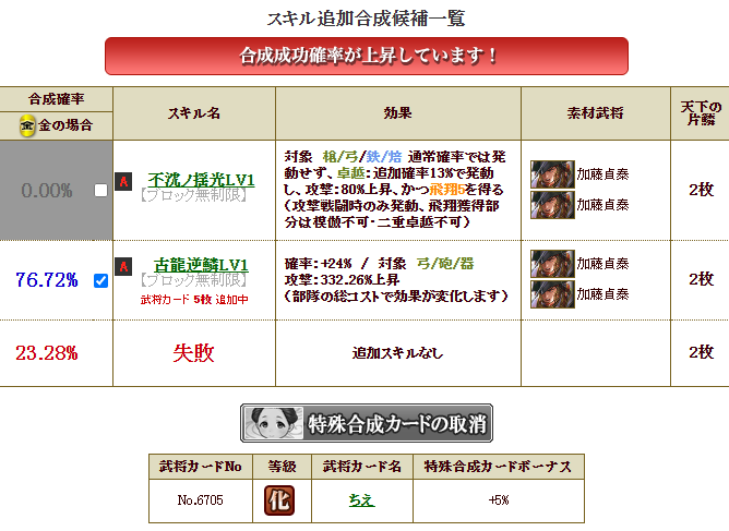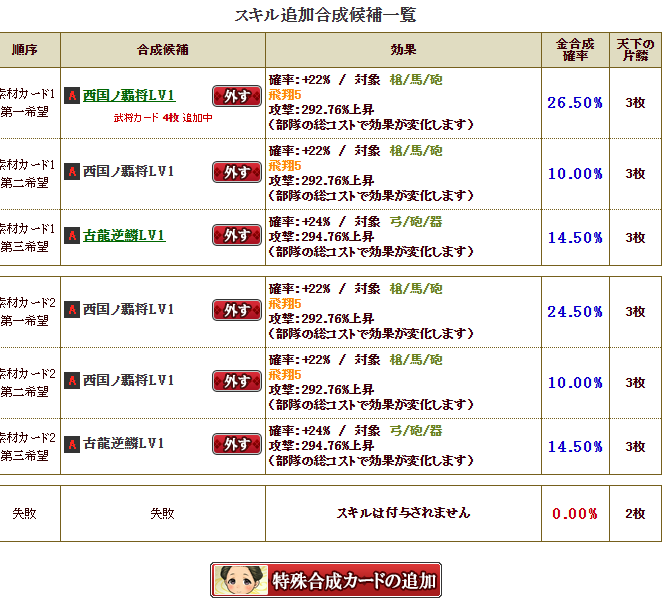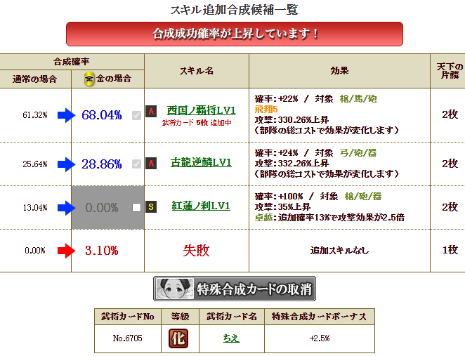 古龍はすでに付いているので、ここは2枚合成・・・大友さん2枚なら西国1点狙いでも100%・・・ぽちっとな