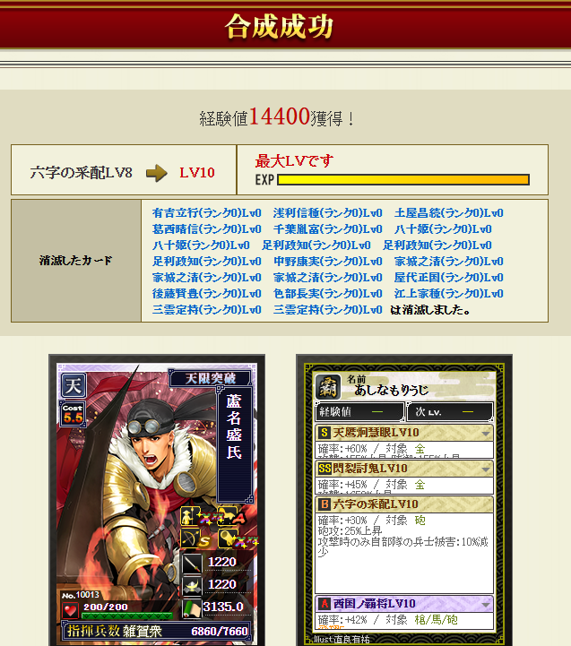 合成画像じゃないwまあいいか・・・六字合成後、レベル10へ