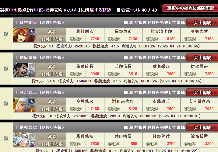 足利部隊は改良の余地がありますが、もう後数時間で合戦も始まるし、これ以上は何もできないw