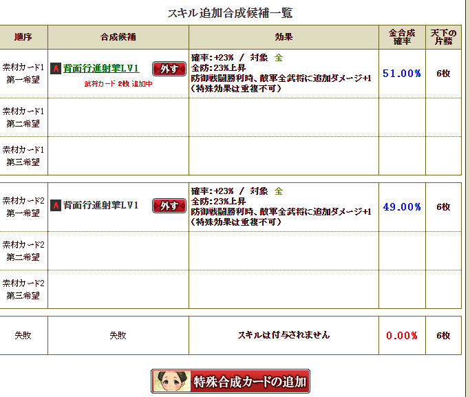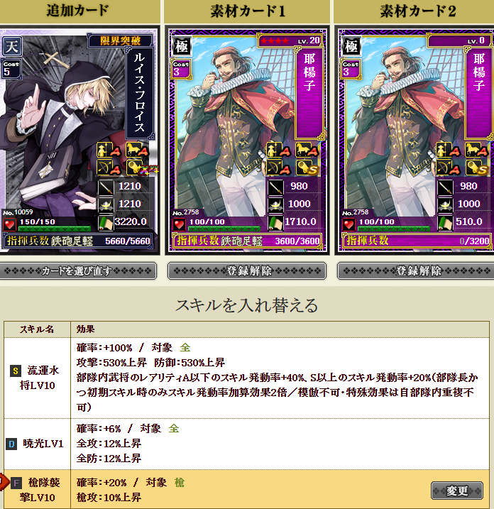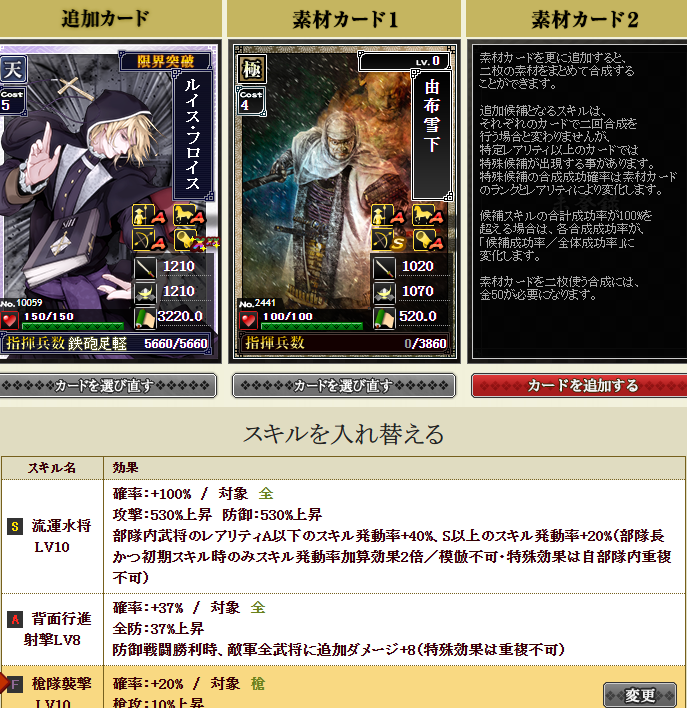 部隊発動率50%+八界で15%、フロイスさんのスキルでA以上は発動率40%アップなので、各スキル発動率が45%と44%あるので・・・なんだかすごく発動しそうですw