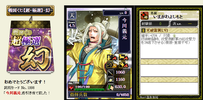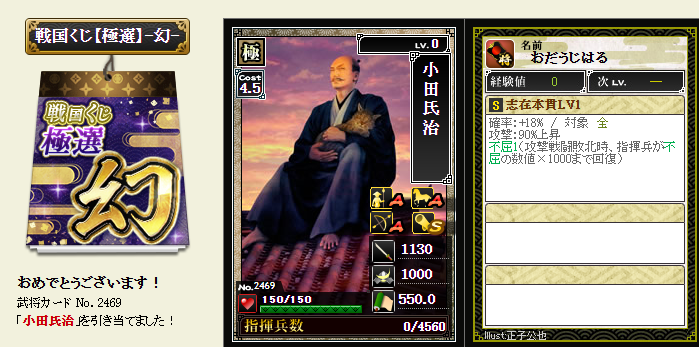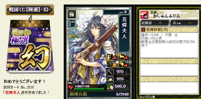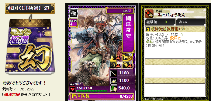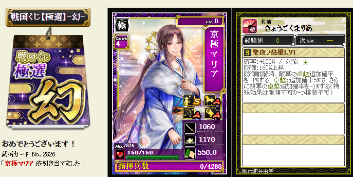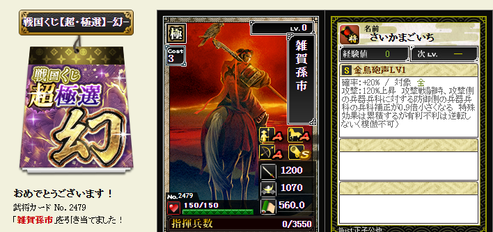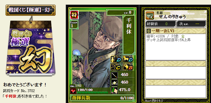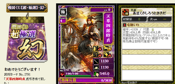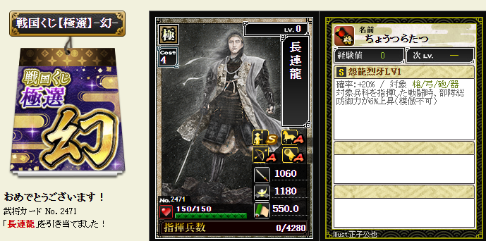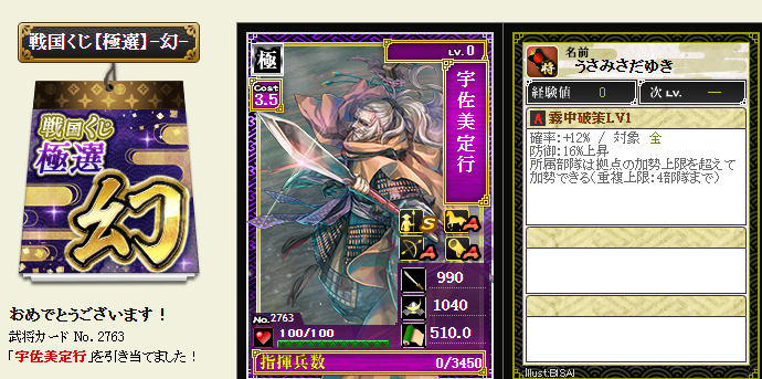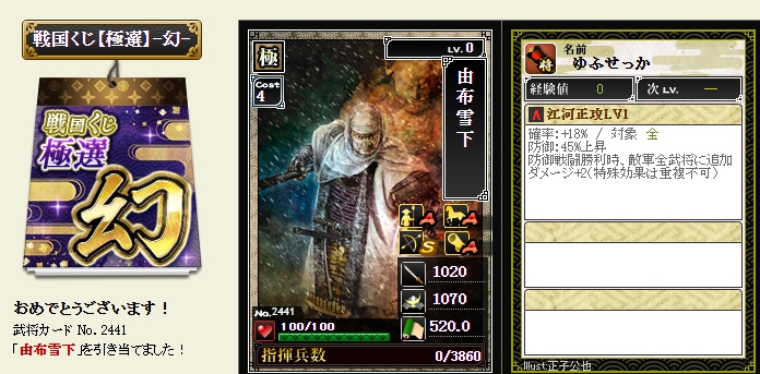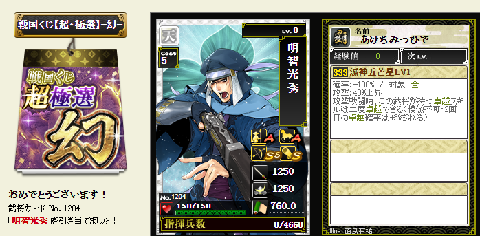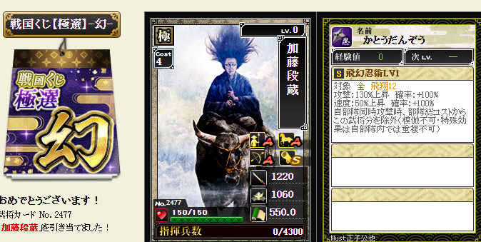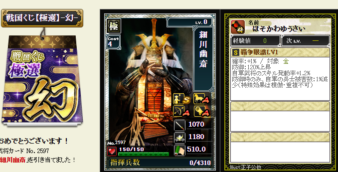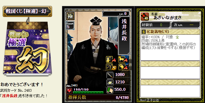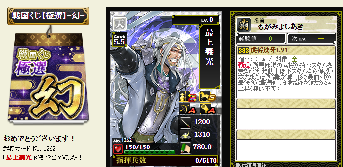 後は、コスト依存武将が引けたら、蘆名部隊を育成してみようかなと・・・