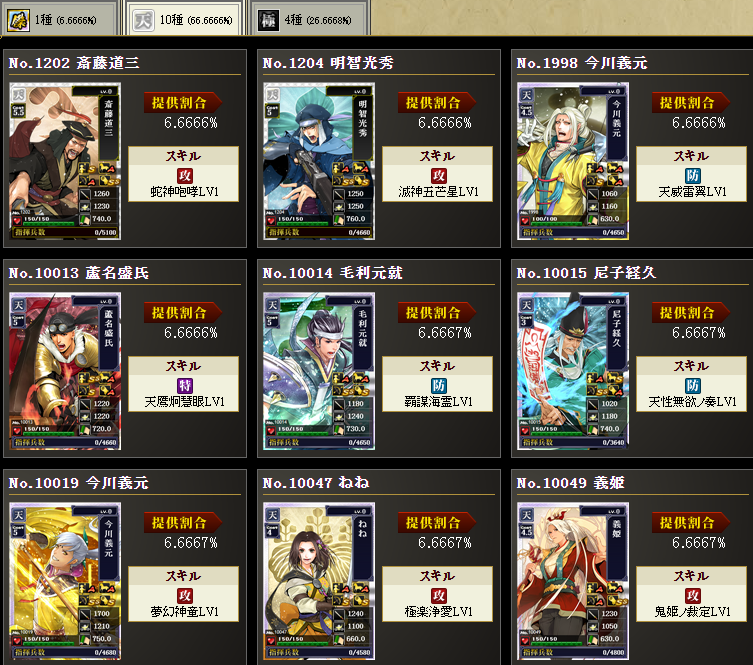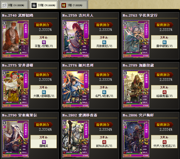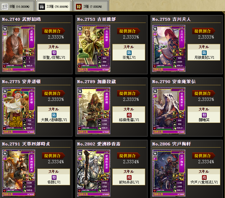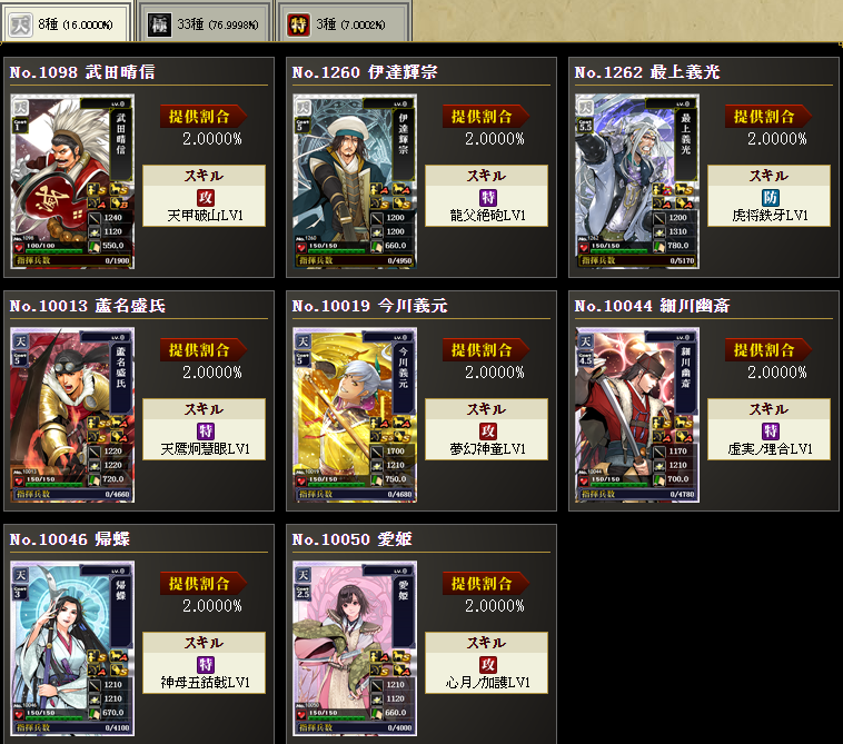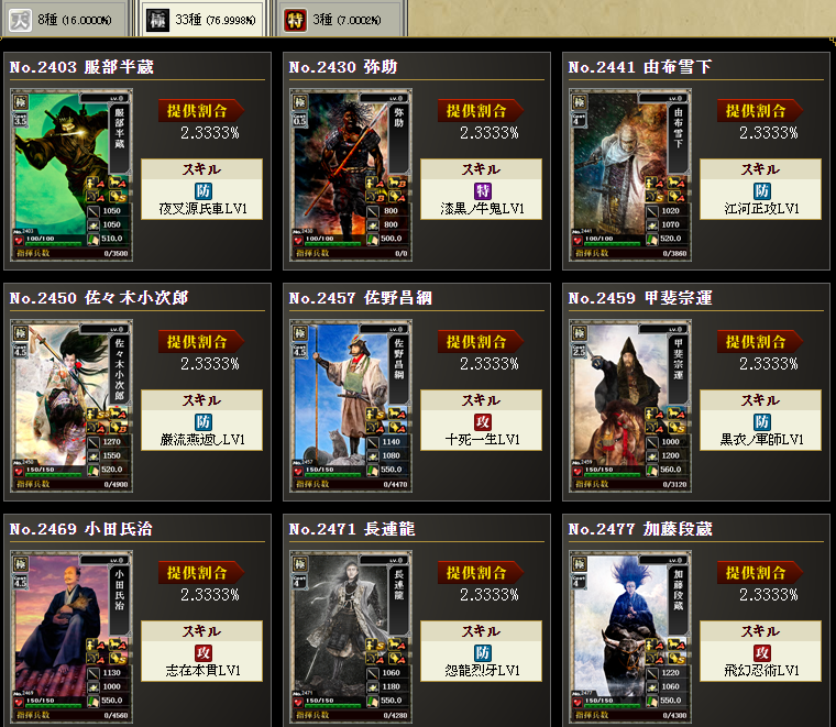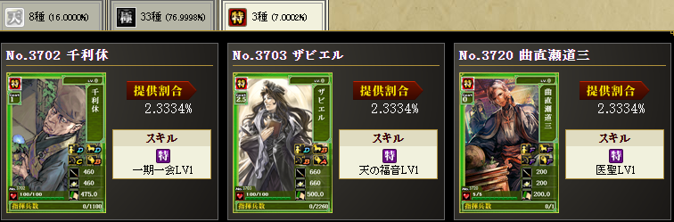 まあ、持ってない武将を入れてます