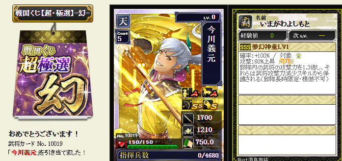 影で極選幻くじと超極選幻くじを引いたので、その結果を貼るだけ・・・w