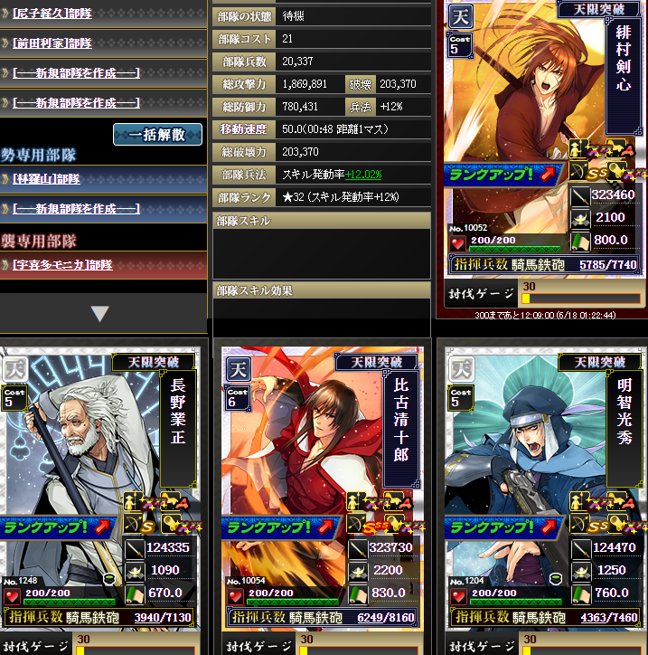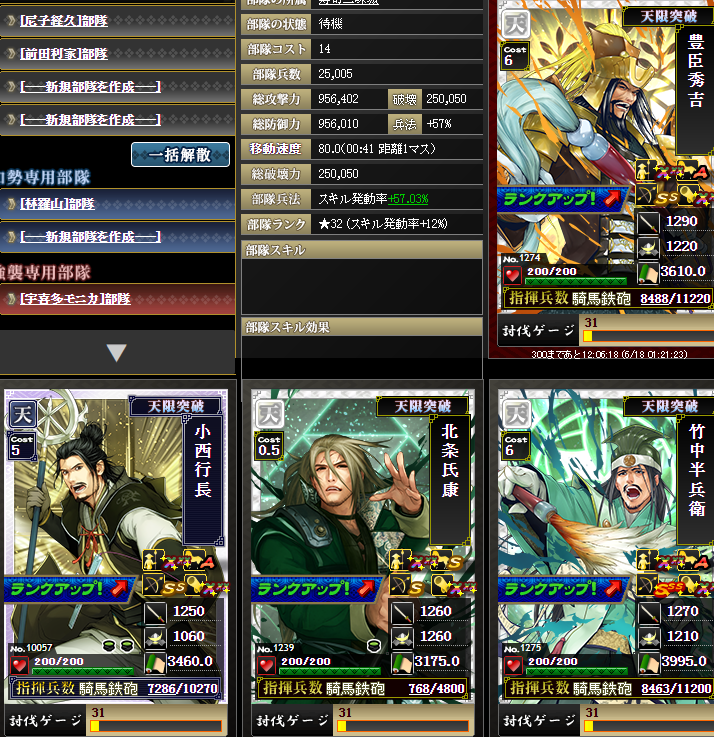 最初、この3部隊に、織田信長さんの入ったコスト依存部隊を入れて4合流しましたが・・・被害大w