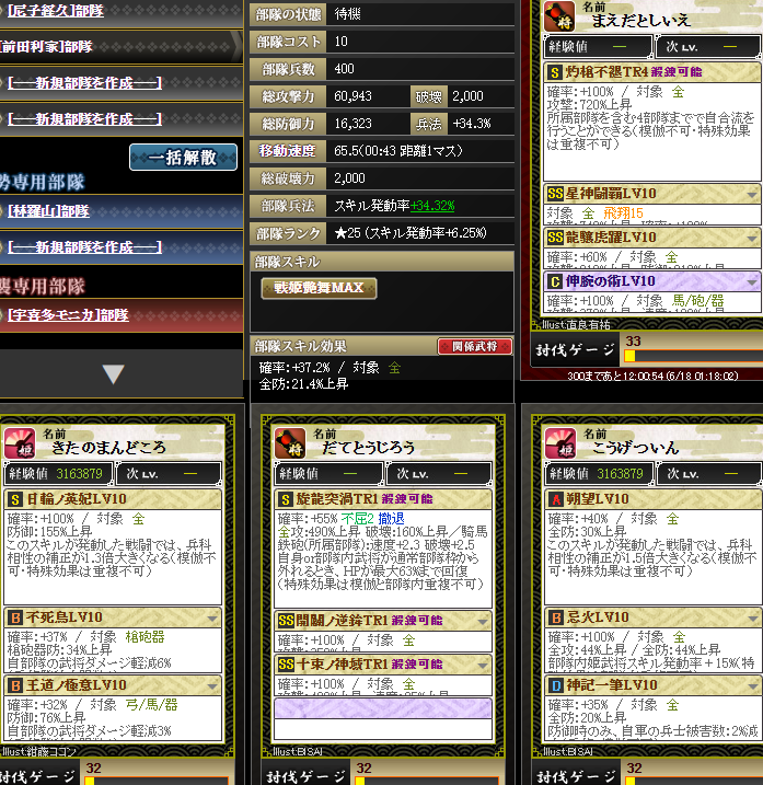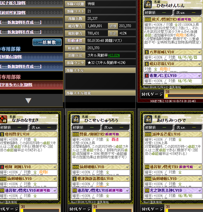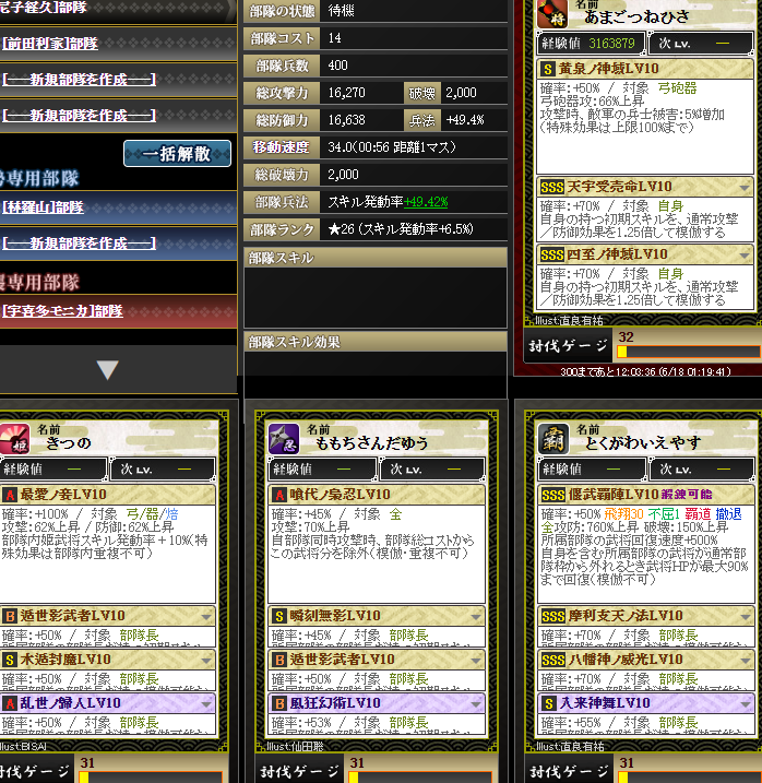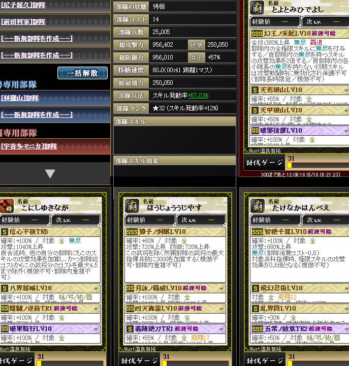 新旧武田晴信さんスキルが有効らしいとのことで、入っている無尽部隊を入れてみる・・・火力は4億ちょい