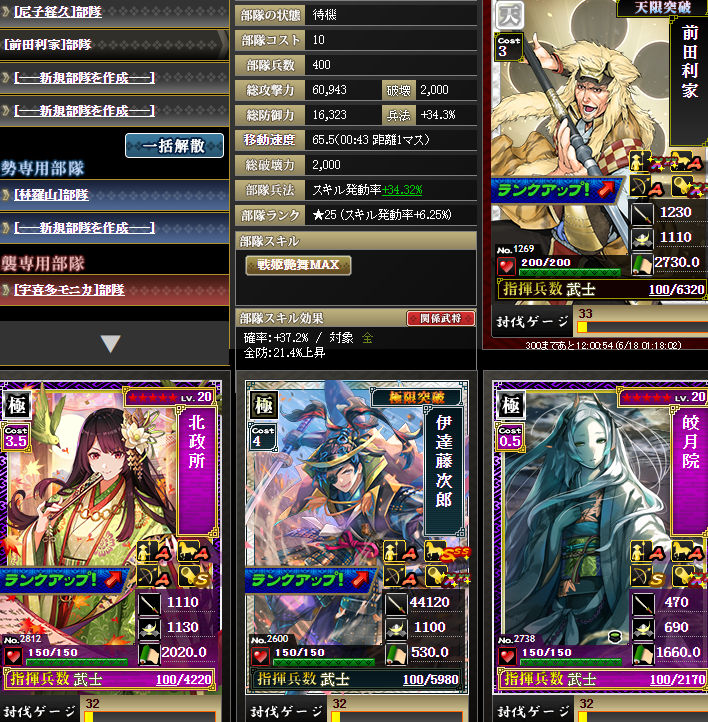 その後、もうちょっと調べてみると、皎月院さん・北政所さんが有効らしいので、代わりに4部隊目に入れてみる・・・