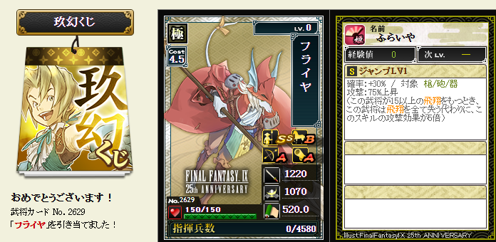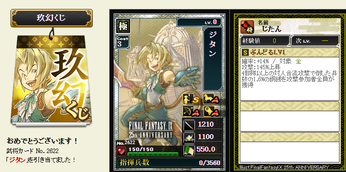 おー銅銭武将の津田さんと同じ感じのジタンさん