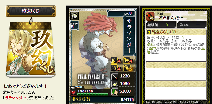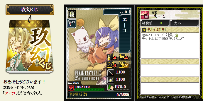 金くじか琥珀くじ10連引けば貰えるカード・・・これも茶人系で、さっきと合わせて20%になりました