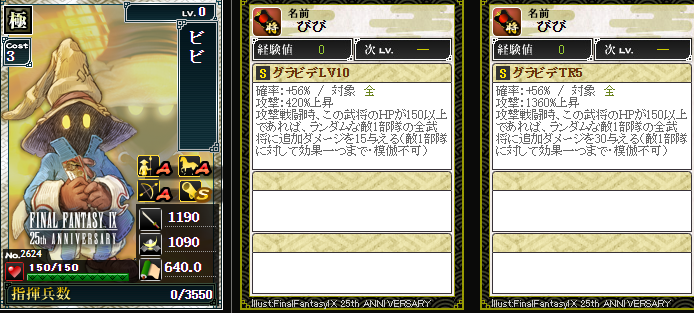 コレクションとしては是非ほしかったビビさんですが・・・東郷さんの上位互換ですね~鍛錬5まで上げるとダメージ30となり、でかいですが・・・鍛錬・・・