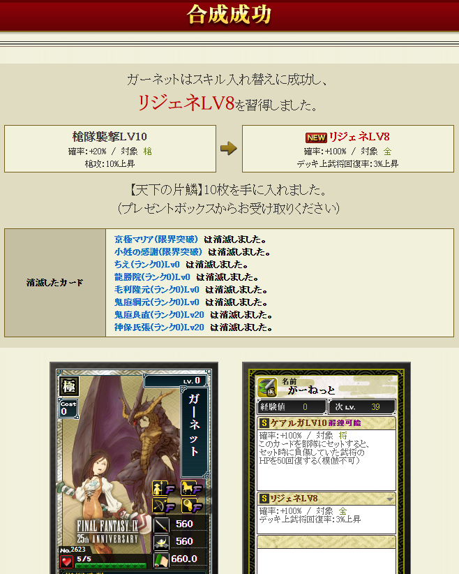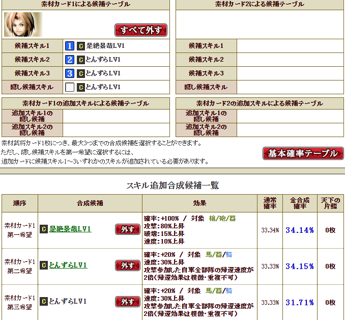 しかし、よく見たら、5%しか上がらず・・・このスキルが4つで「一期一会」の20%と同等・・・まあ、ないよりはいいですねw