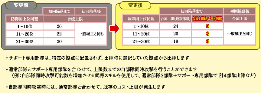 ポイント⑦上記の図のように、今まで、例えば26合流制限のところは、24合流制限+サポート部隊3で、合計27合流となる感じですね