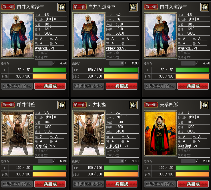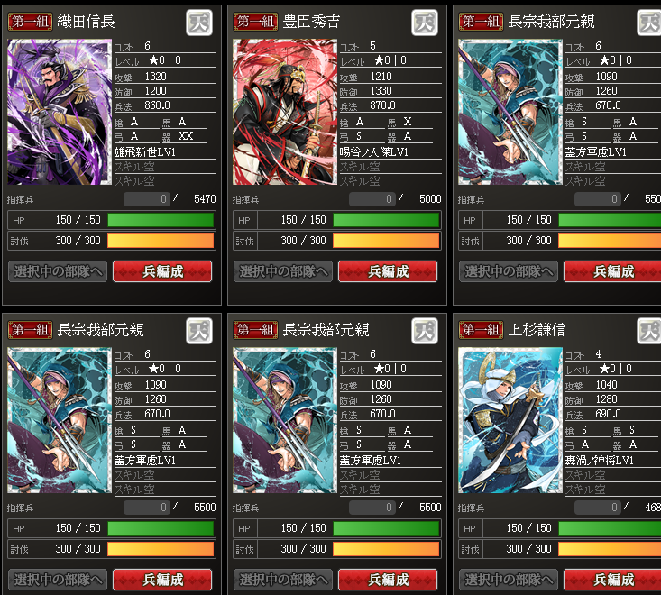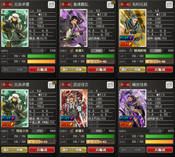 防御で強い長宗我部さんは、盟主加勢用で育成ですかね~後は・・・違う古い信長さんw