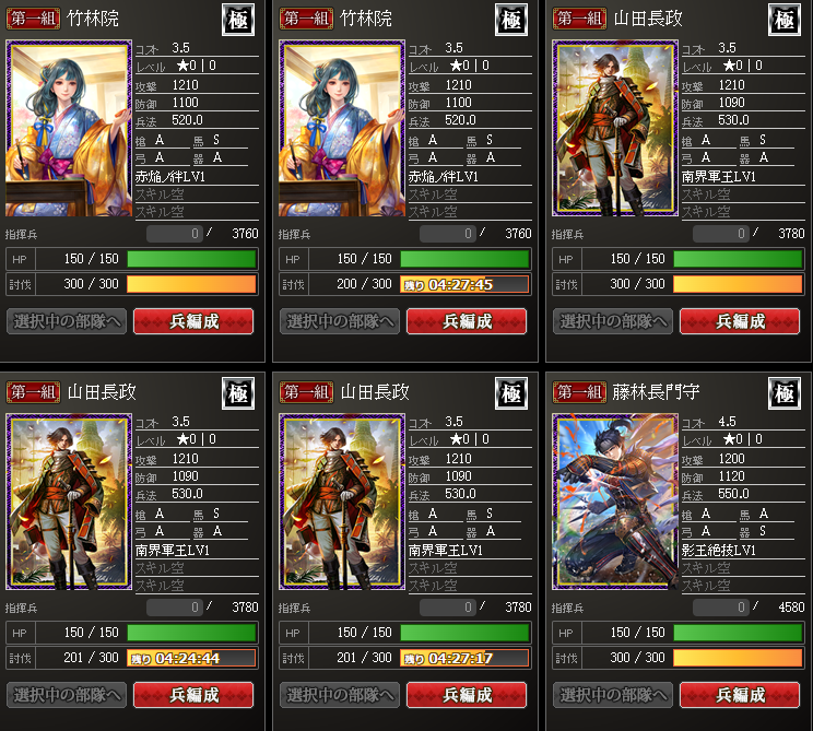 4位の信玄さんは、赤限定で、使い勝手がまだわかってませんが、強いことは強いということで・・・