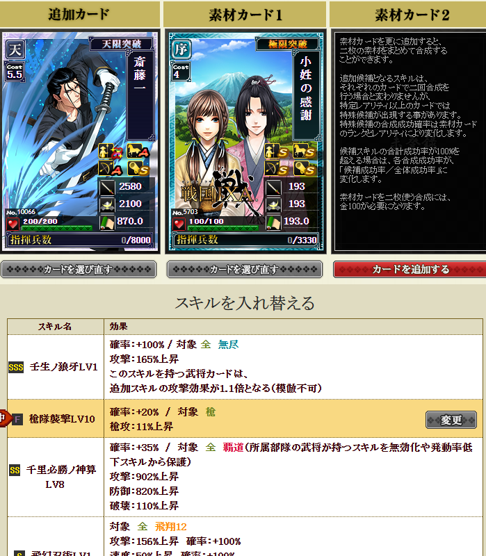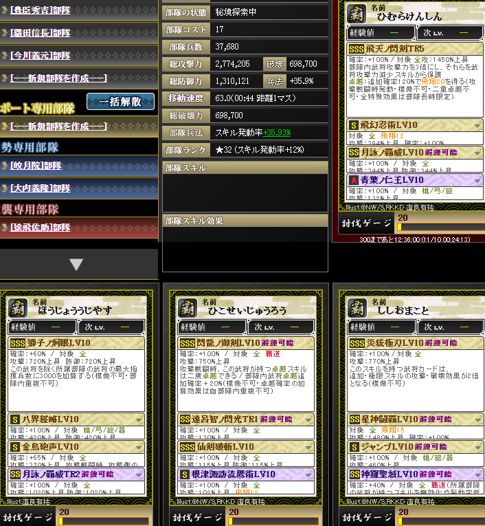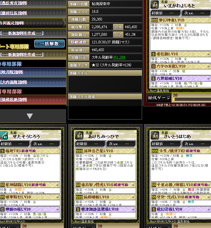 武田2種スキル、金烏×2、乱界図1、足利さん初期スキル×2くらいかな・・・