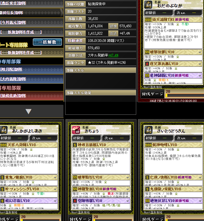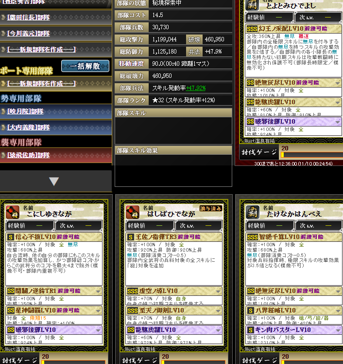 足利さんスキルは移植できたらいいんですけどね・・・移植不可のため、本人を入れざるを得ず、そのため火力が下がります・・・しかし、防御側のバランス補正拡大を足利さん一人で0.8倍にする能力は外せないと個人的には思います
