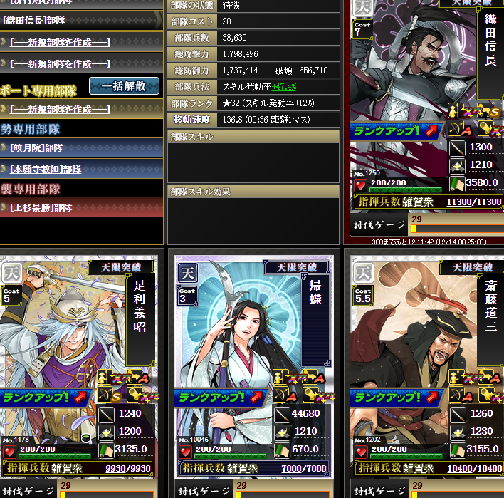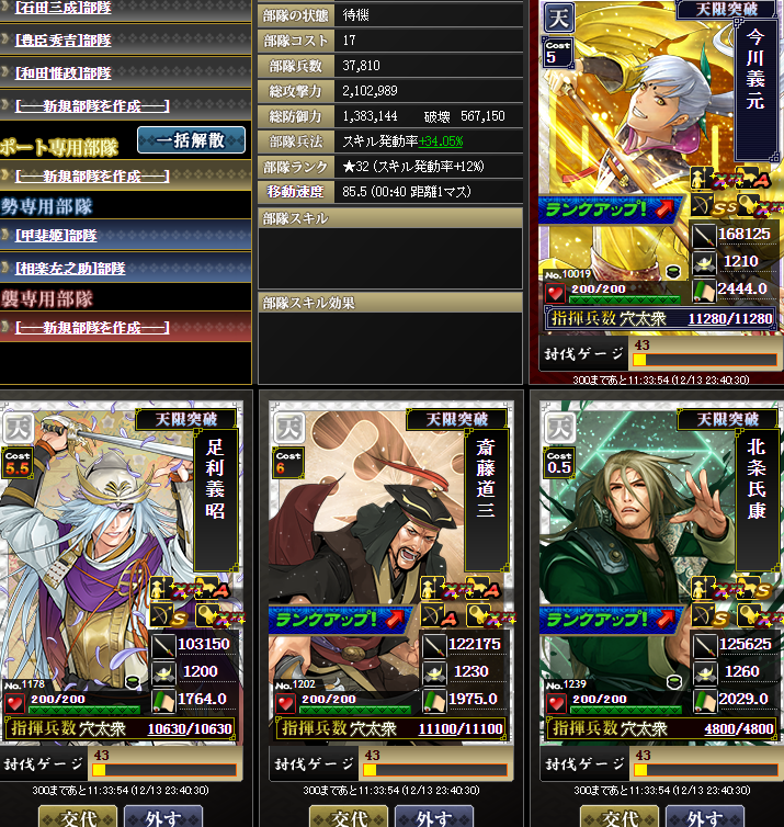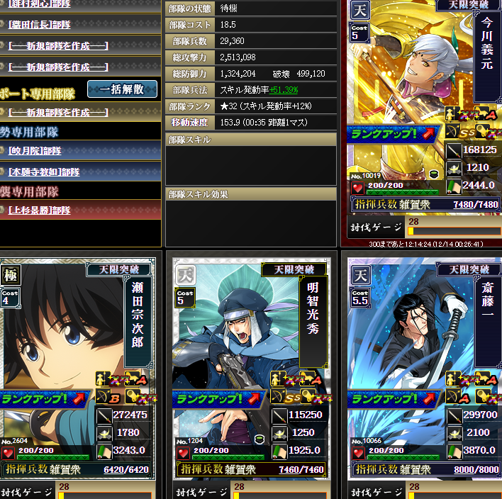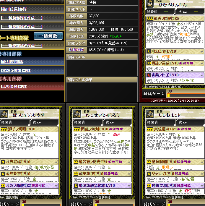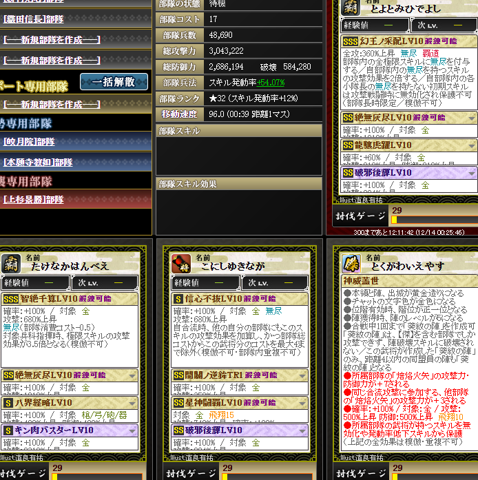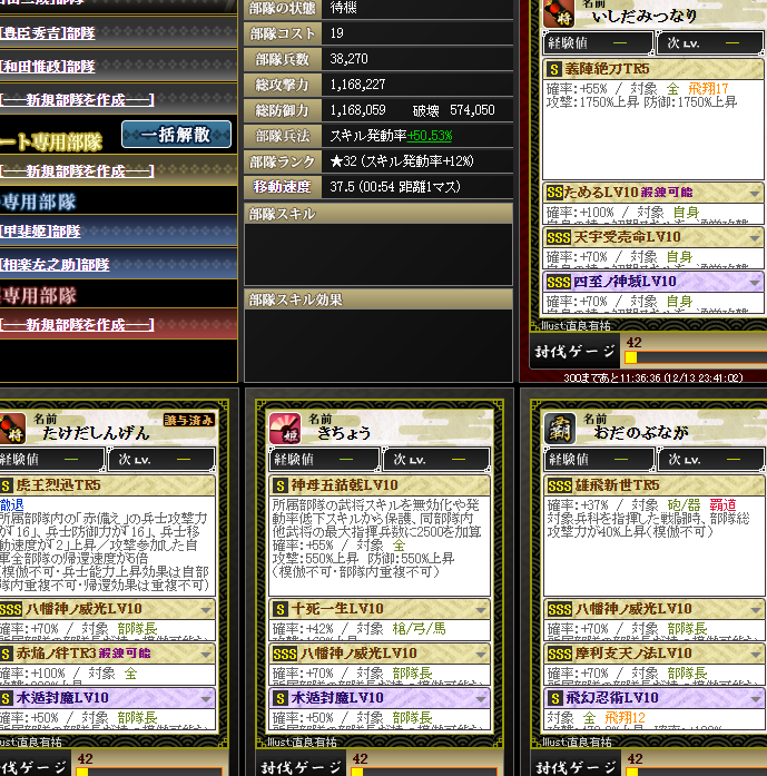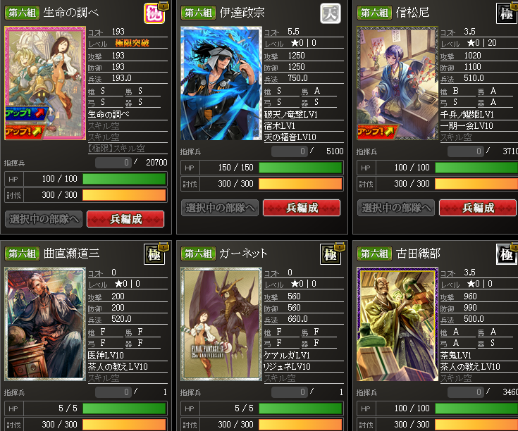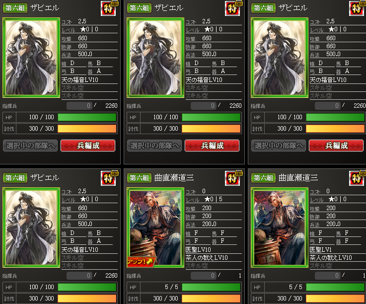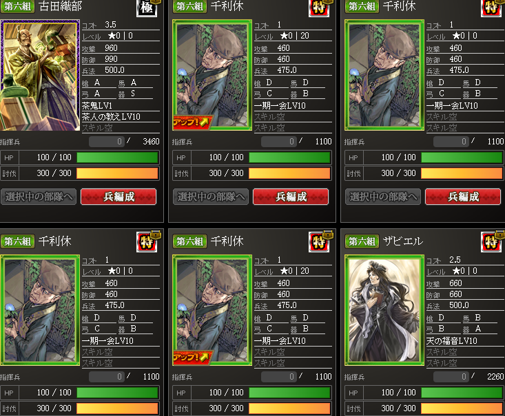 なんかやけに上がっているように見えるんですが・・・実は、部隊内の武将入れ替えを行いました・・・