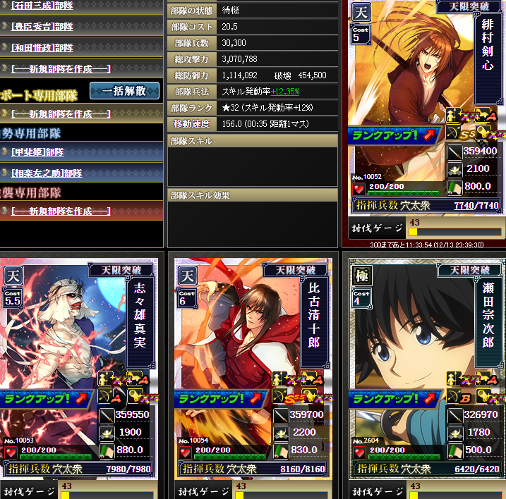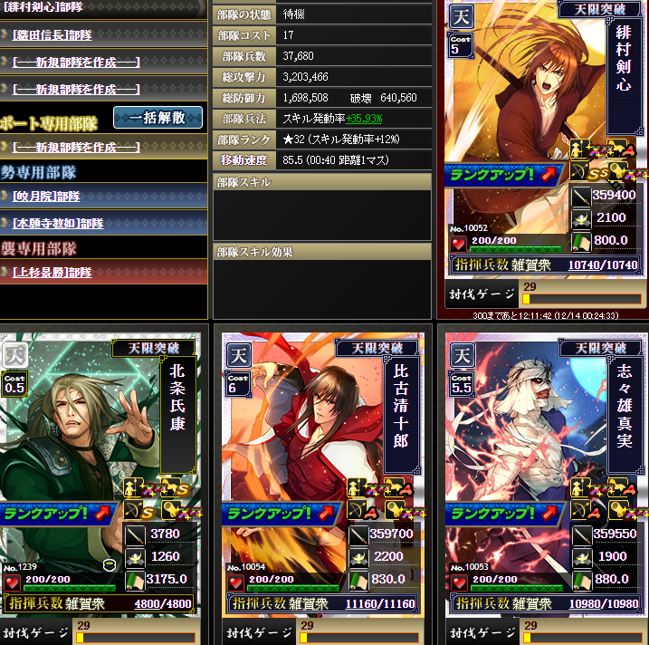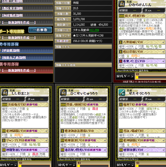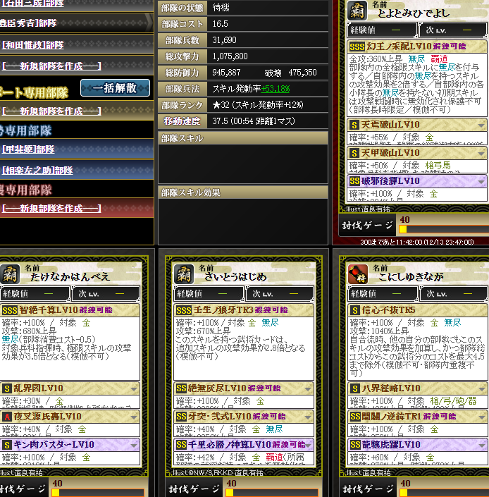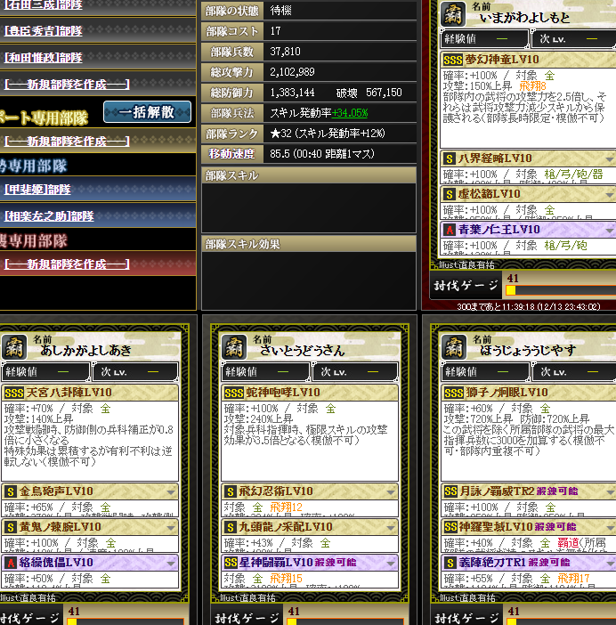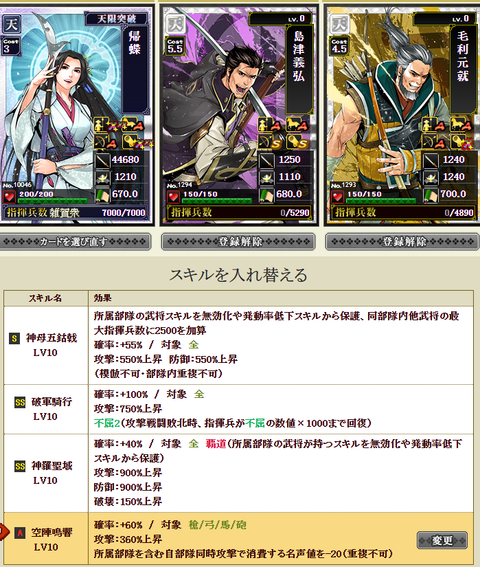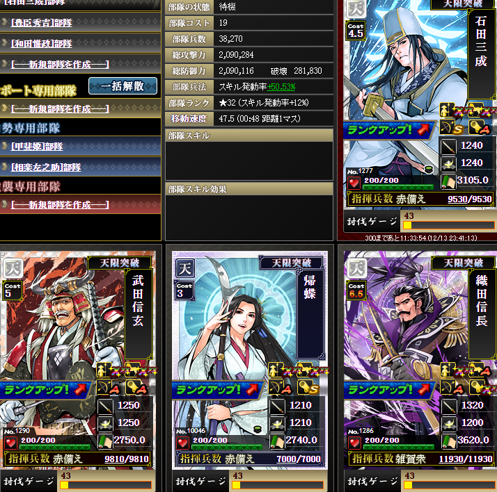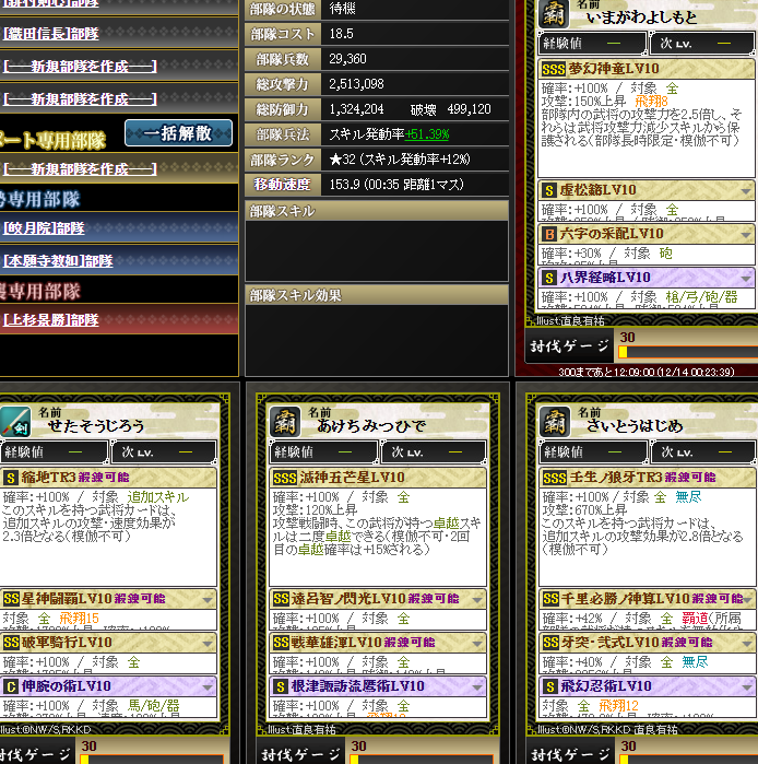 なんかやけに上がっているように見えるんですが・・・実は、部隊内の武将入れ替えを行いました・・・