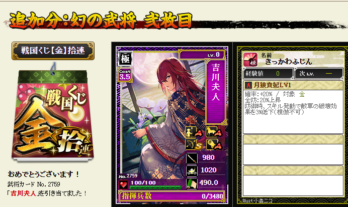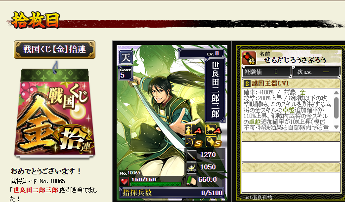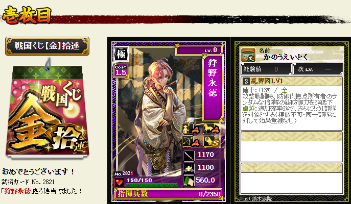 金くじでは、本城主は珍しく10連に天が1枚必ず入っていました~珍しいこともある・・・その他