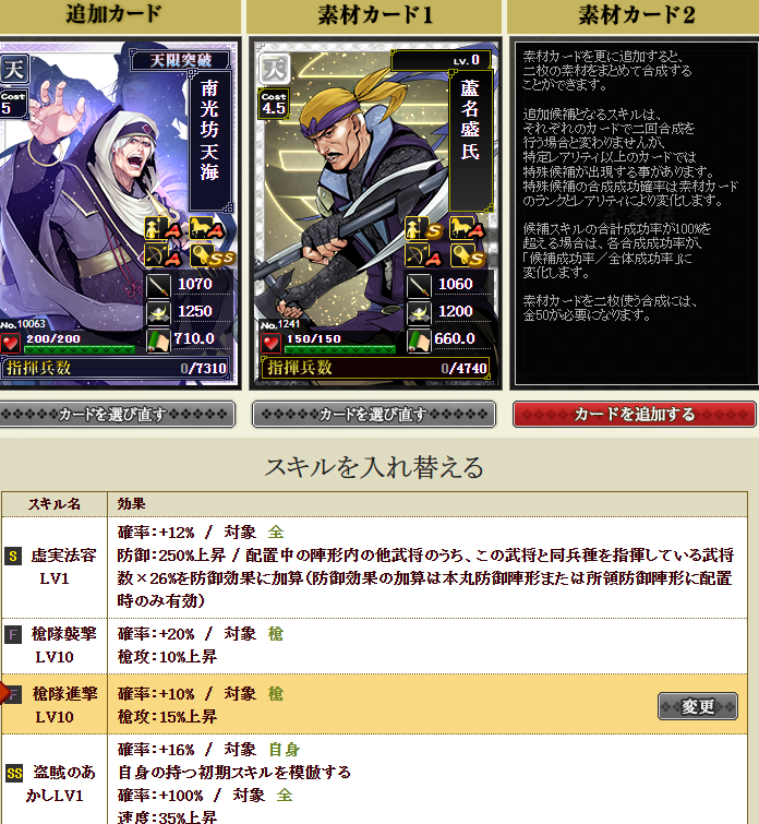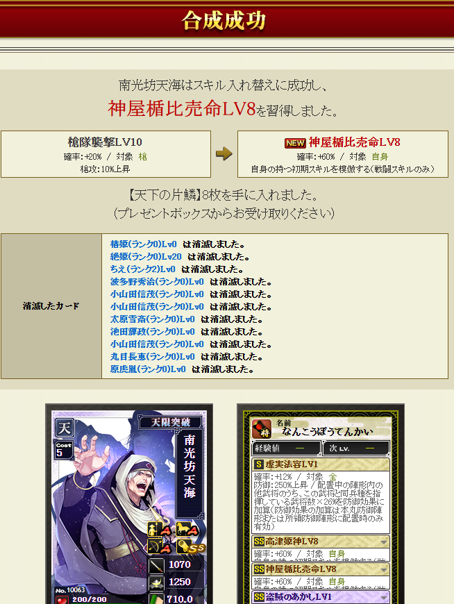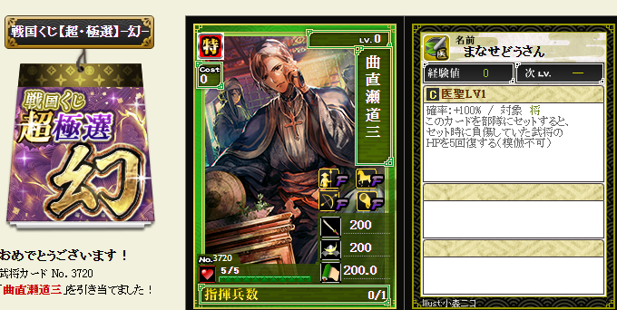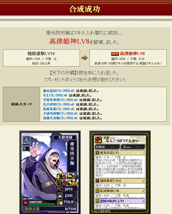 極武将5枚生贄・・・でも失敗確率結構ある・・・何とかついてね~ポチっとな!!!
