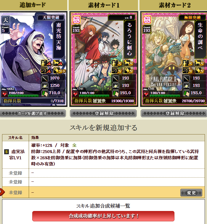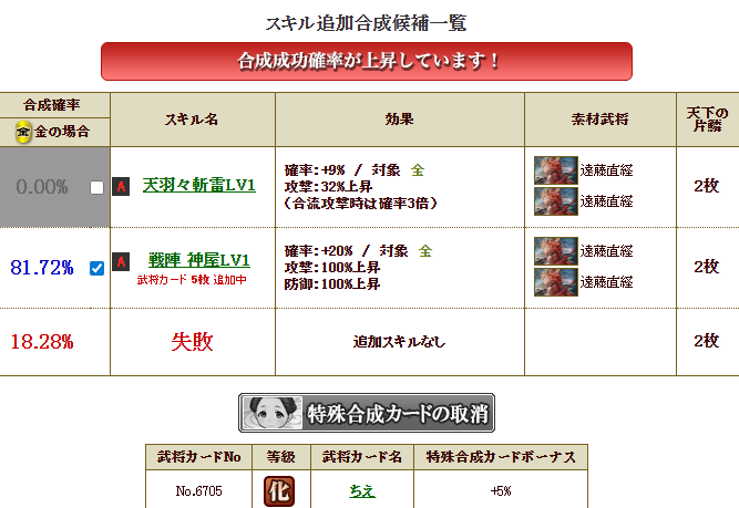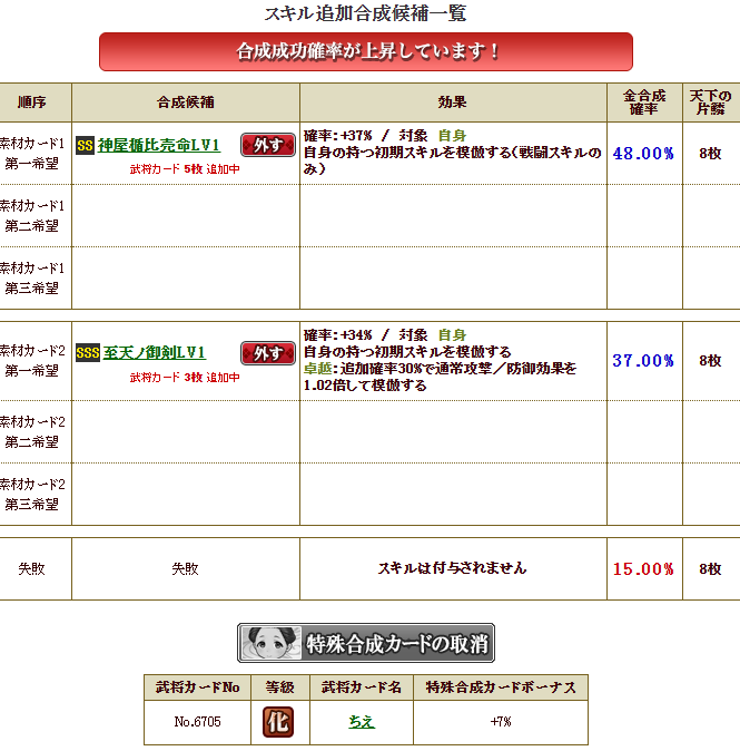 被ってる祝いカードを使い、合成・・・失敗1.66・・・まあいけるでしょう・・・ポチっとな!!!