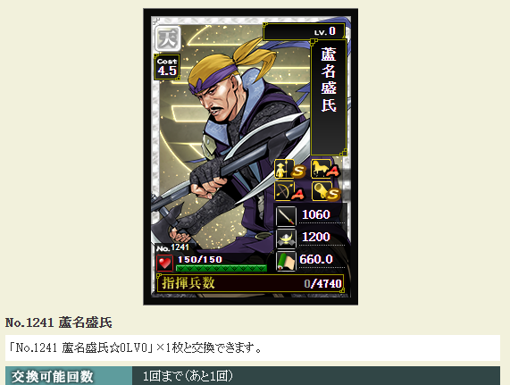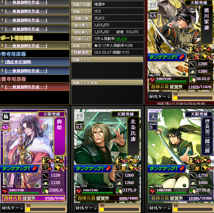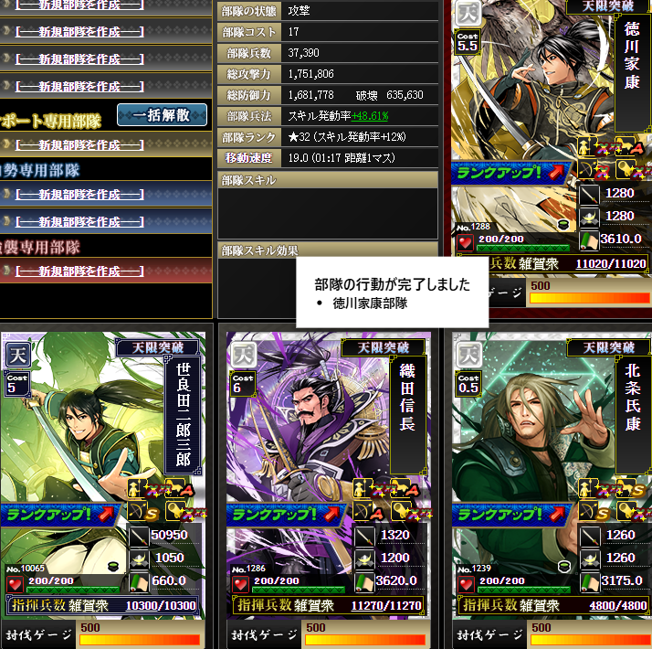 メイン鯖と統合したら、何とか家康さんの鍛錬を上げて、メイン鯖にいる鍛錬5の1.3のぶをここに入れたら強いかなあ~と思ったりしてます